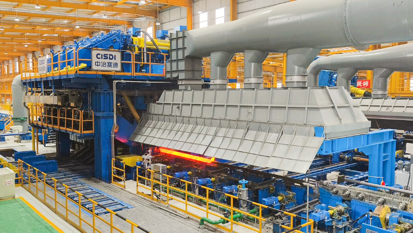 由中冶賽迪提供全線關鍵工藝、裝備及控制技術的首條中國自主化大型萬能重軌、型鋼生產線河北永洋特鋼重軌萬能連軋生產線,打破了萬能軋機工藝及裝備技術長期依賴進口的局面,有效解決了軌道用鋼領域“卡脖子”難題,大大推動了我國軌道用鋼生產工藝及裝備技術進步。